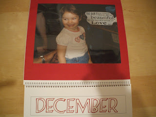 This one is for my mom. On each page is 3 pictures - 1 of each of my kids during a common event. I journaled on each page of her calendar. I am fairly pleased with how it came out.